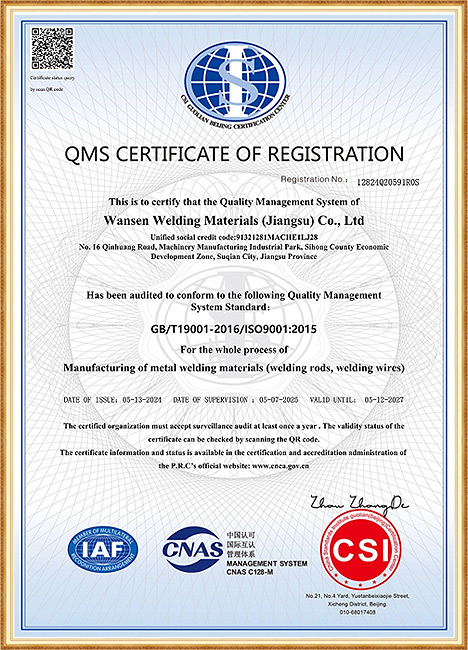 萬森焊材(江蘇)有限公司是集研發(fā)、生產(chǎn)、經(jīng)營一體化的焊接專業(yè)公司。成立于1992年,經(jīng)過30多年的發(fā)展;"萬森"牌焊接材料擁有符合客戶需求的系列焊接材料。主要產(chǎn)品有用于手工電弧焊的非合金鋼及細(xì)晶粒鋼焊條、高強(qiáng)鋼焊條、熱強(qiáng)鋼焊條、不銹鋼焊條、堆焊焊條、鑄鐵焊條、鎳及鎳合金焊條;適用于氣體保護(hù)焊的不銹鋼、硬面堆焊、熱強(qiáng)鋼、鎳基系列實芯、藥芯焊絲。